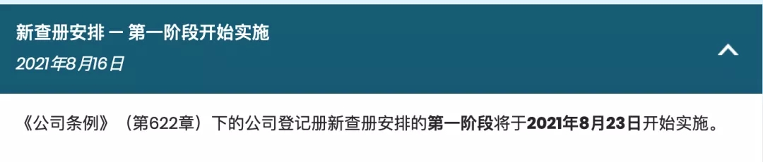 據(jù)香港公司注冊處8月16日消息,《公司條例》(第622章)下的公司登記冊新查冊安排的第一階段將于2021年8月23日開始實(shí)施。